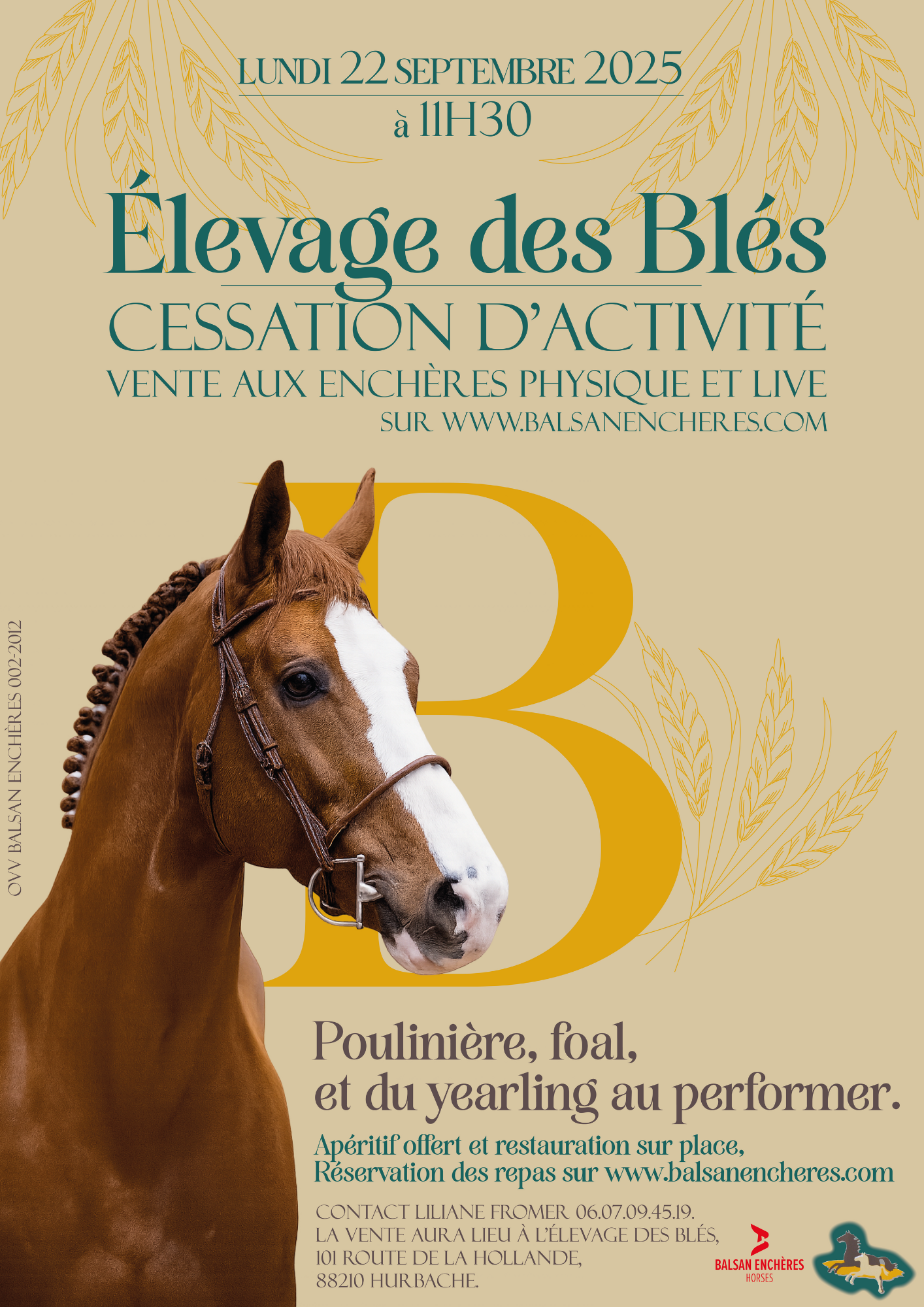 VENTE AUX ENCHERES DE CHEVAUX DE SPORT-Réduction d'effectif de 3 élevages